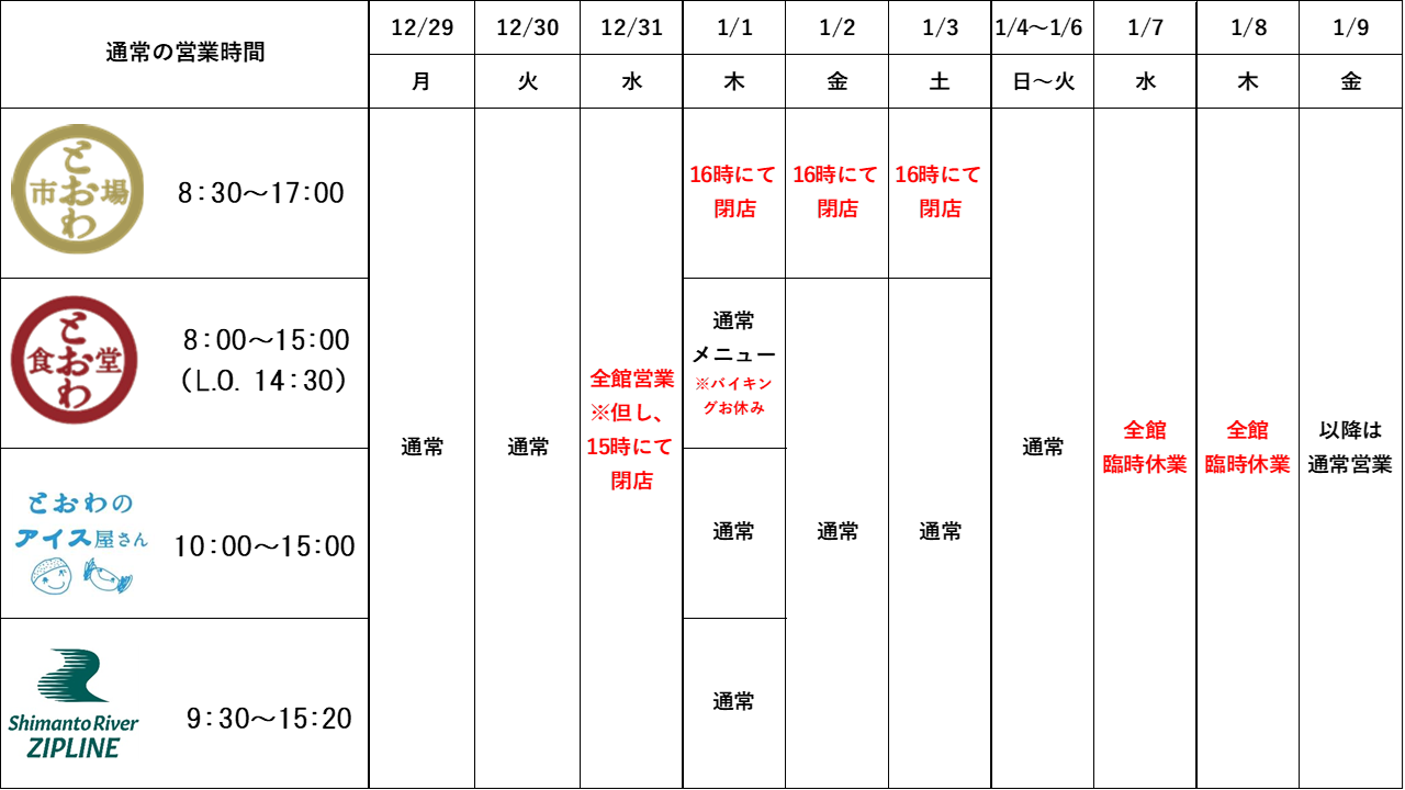 ※とおわ市場、とおわのアイス屋さんには定休日はありません
